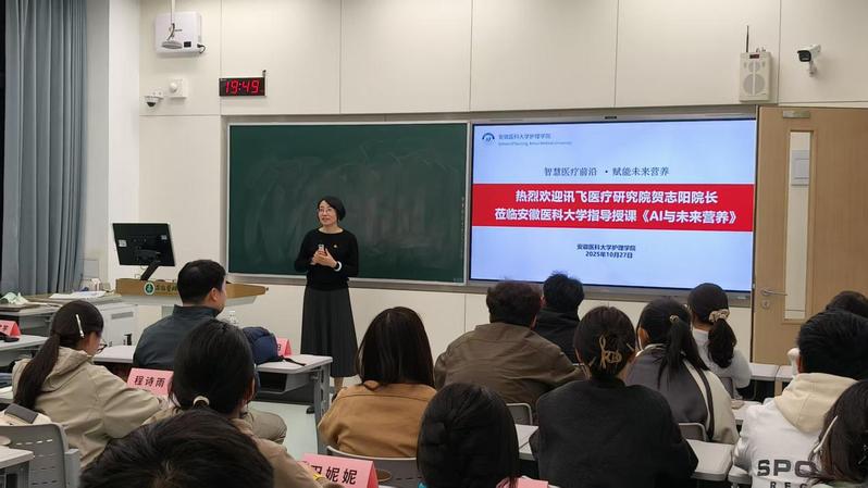 联合讯飞医疗研究院共同打造,旨在打破学科界限,助力培养具备前沿视野与复合能力的医疗人才。课程首讲特邀讯飞医疗研究院院长贺志阳研究员主讲,主题为《人工智能技术进展与医疗行业应用落地探索》。他结合自身在人工智能与医疗领域的深耕经验,深入浅出解读人工智能技术前沿进展,通过智能诊断系统的精准应用、讯飞医疗对医疗问题辅助解答、疾病预测大数据赋能等实际案例,生动展现AI技术在医疗行业的落地价值,让同学们对AI赋能医疗的无