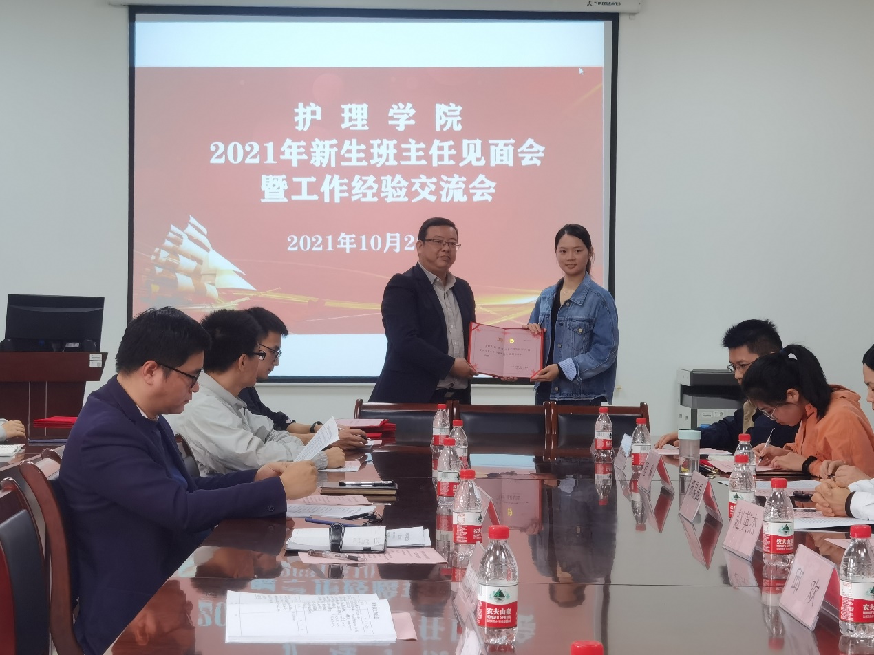 1029日下午,萝莉社 2021级新生班主任见面会暨工作经验交流会在学院6楼会议室举行。学院领导、21级辅导员老师、新生班主任和新生代表出席会议,该院党委副书记王磊主持会议。