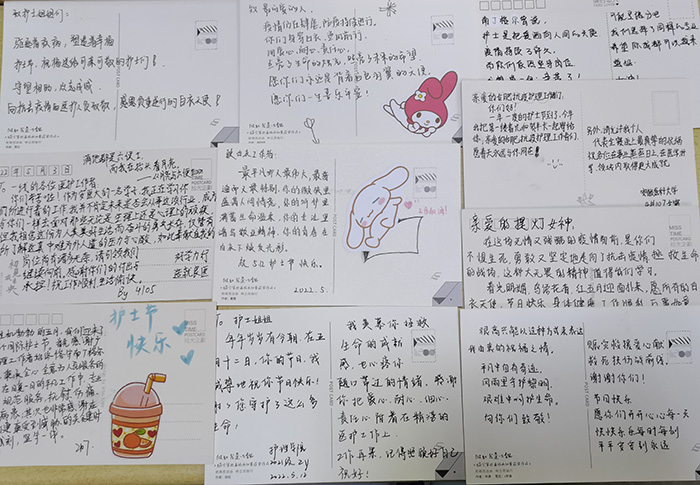 “5·12”国际护士节前夕,我校萝莉社 的学生代表前往第二附属医院,向医院的临床护士前辈送上了一封封亲手写下祝福话语的感谢信,向他们表示敬意,现场气氛十分温馨。