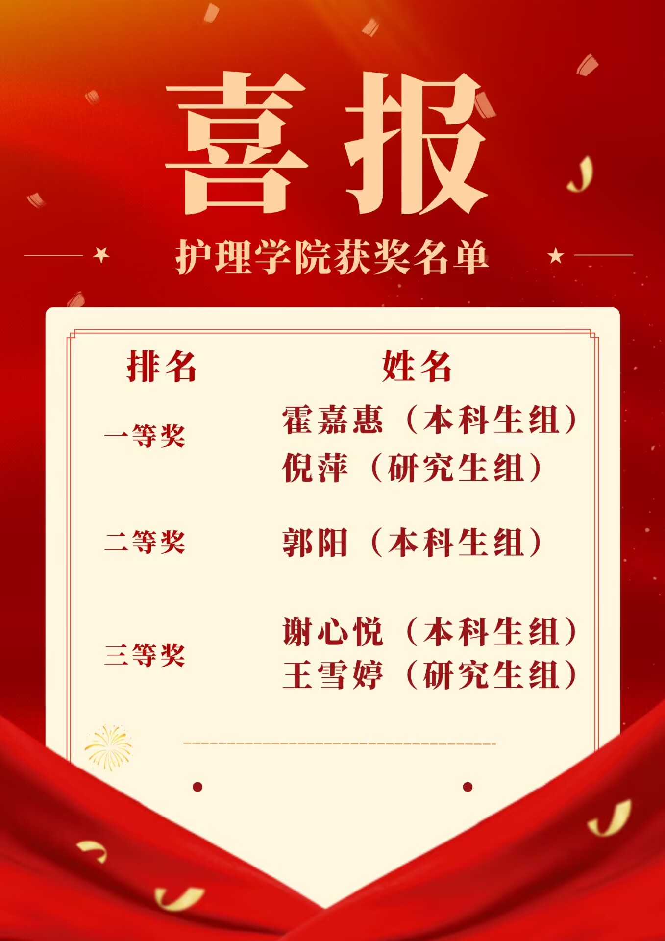 根据专业评委的现场打分,萝莉社 5名参赛选手全员获奖,其中,霍嘉惠(本科生组)、倪萍(研究生组)获一等奖,郭阳(本科生组)获二等奖,谢心悦(本科生组)、王雪婷(研究生组)获三等奖。
