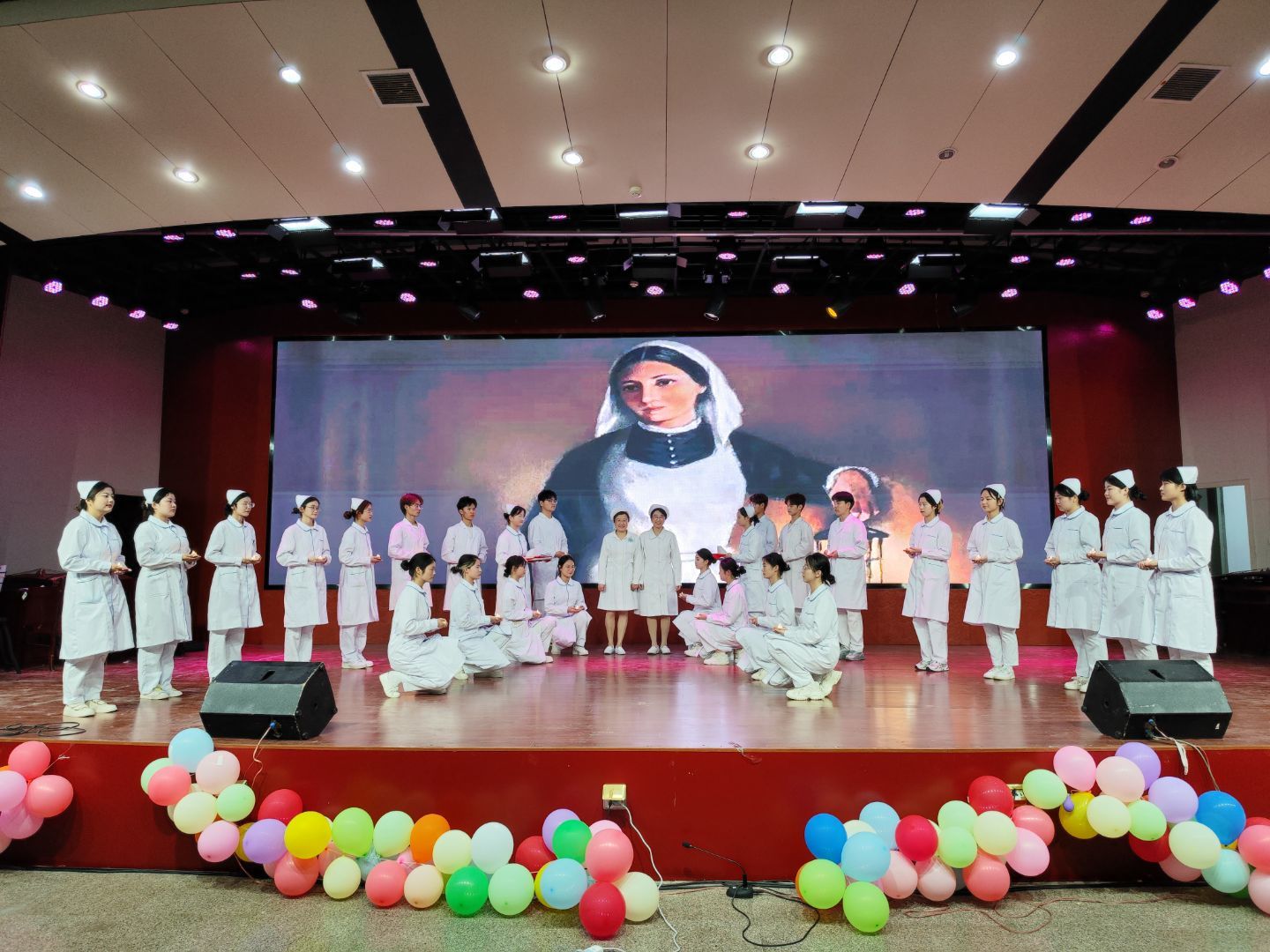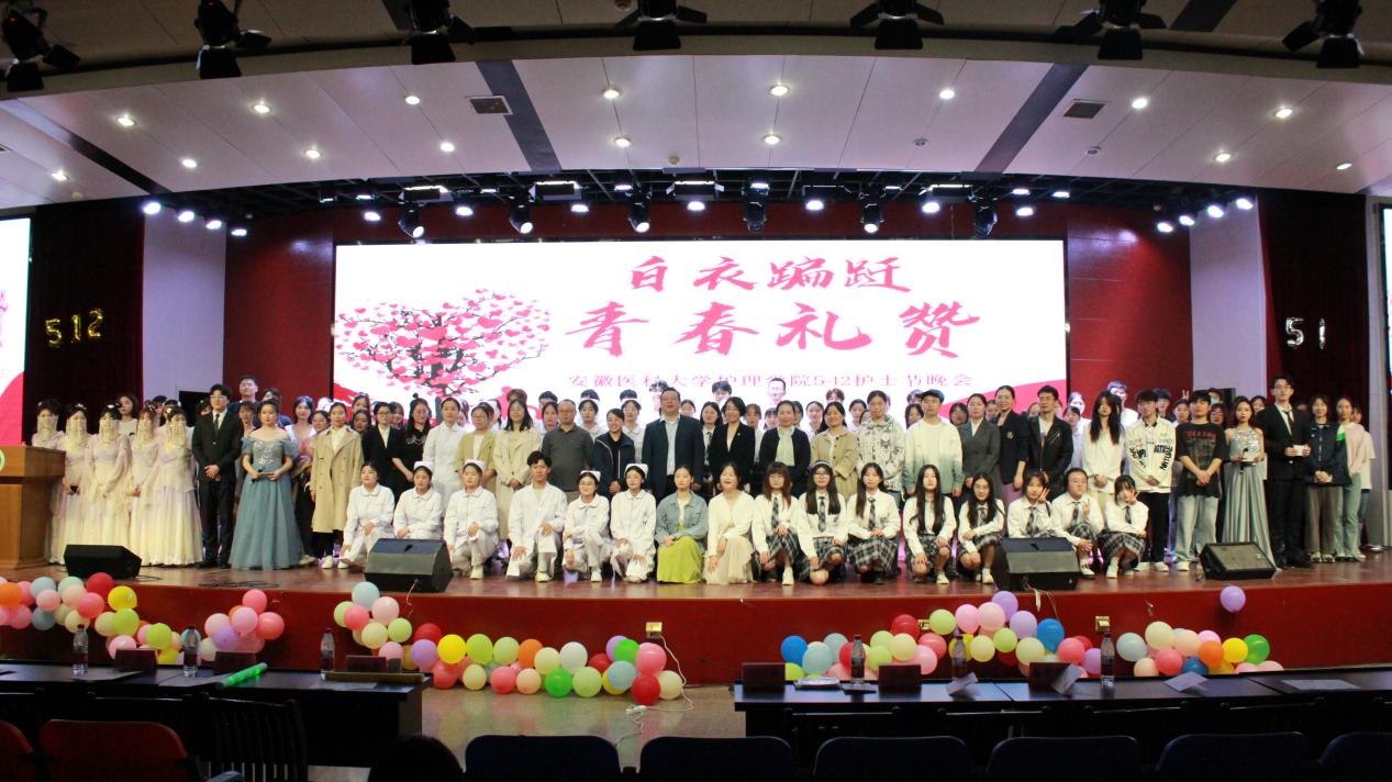 为迎接第112个国际5·12国际护士节,赞颂和传承现代护理学科创始人南丁格尔救死扶伤的人道主义精神和为护理事业无私奉献的精神,培养学生大爱无疆的人文情怀,在深入开展学习贯彻习近平新时代中国特色社会主义思想主题教育之际,萝莉社 于5月11日晚在南校区多功能报告厅隆重举办了“白衣翩跹,青春礼赞”护士节文艺晚会。学院党委书记赵云峰、院长洪静芳、党委副书记王磊、副院长赵梅、副院长李树雯及全院师生出席本次晚会。