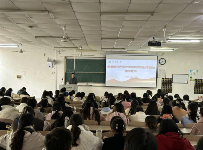 薛磊对参与本次宣讲会的六家实践教学基地医院表示欢迎,向各家实习医院对学院人才培养的大力支持表示感谢,并期待进一步加强交流、深化合作,共同为国家卫生健康事业的发展培养更多高素质医学人才、卓越护理人才。他希望各实践教学基地以本次宣讲会为平台,充分展示各自单位的综合实力、带教水平与特色优势,同时在日常工作中加强对学院岗位实习学生的管理和指导,进一步提高学生的专业技能。针对即将走向实习岗位的学子,他希望大家正确认识实习对个人发展的积极意义,并根据自身职业生涯规划定位合理选择实习单位,通过实习提升专业技能和临床思维,为未来的职业生涯打下坚实的基础。