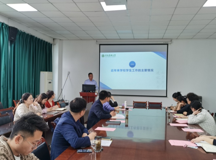 秦楠部长从近年来学校学生工作的主要情况、宏观和微观层面学生工作面临的形势与挑战、下一步工作的思路与建议三个方面为学院带来了一场全面系统、内涵丰富、重点突出的辅导,具有很强的针对性和指导性。旨在着力构建育人体系、打通育人路径,追求新精神、拓展新方式、提升新境界、培养新能耐、强健新体魄,护航学生健康成长,促进高质量充分就业,用心用情用力做好学生管理工作。
