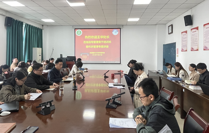 10月25日中午,萝莉社 第三期启航新学期管理骨干培训班以线上线下相结合的方式,举办第三场专题讲座。校科技产业处处长王华教授应邀为培训班做科研管理与临床研究专题讲座。学院党委书记薛磊、院长洪静芳以及院领导班子成员出席讲座,副院长李树雯主持讲座。