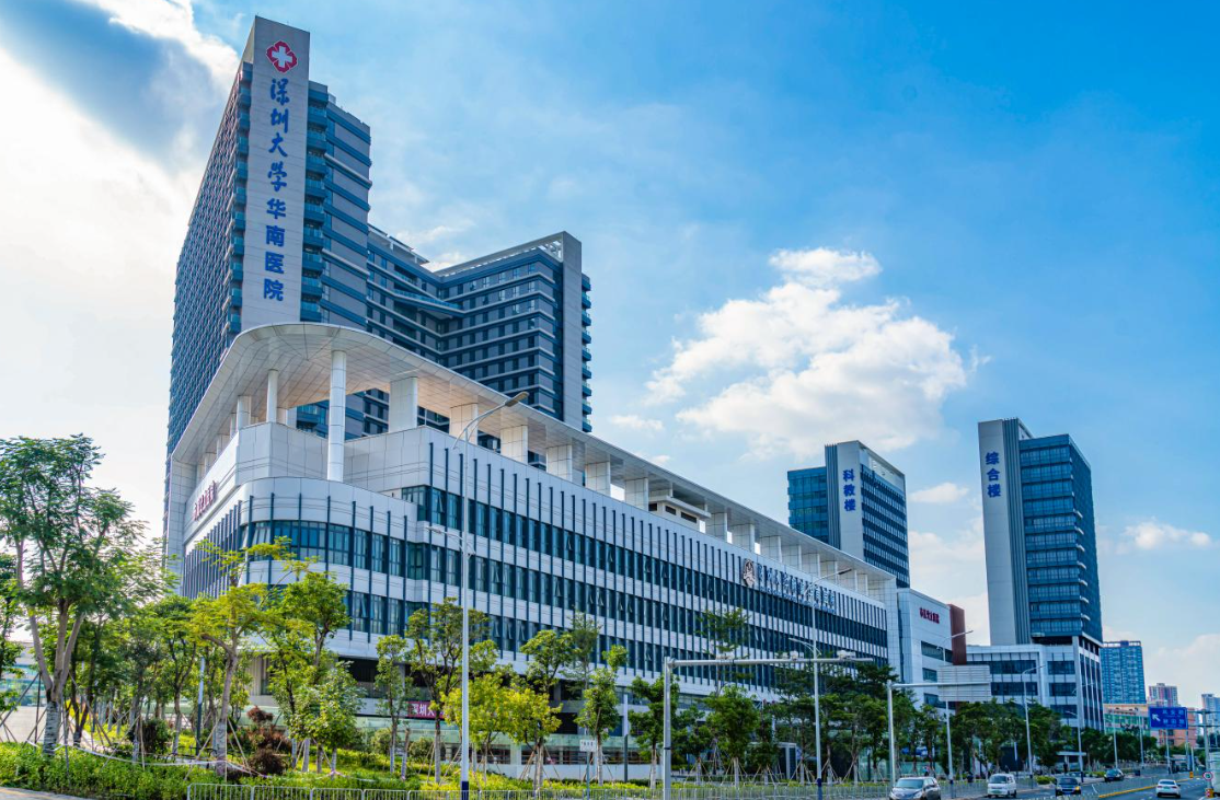 深圳大学附属华南医院(以下简称“华南医院”)是深圳市政府按照三级甲等医院规模打造,重点投入建设的市属公立医院,坐落于深圳市龙岗区平湖街道,建筑面积约32.77万平方米,一期建设完成床位数2000张,科研教学大楼面积达3万平方米,是深圳当前最大的集医教研于一体的单体综合医院建筑。院区环境优雅舒适,现代化设计简洁大气,布局合理,功能齐全,同时设有三层地下停车场,可提供1900个停车位,方便患者点对点就医。深圳大学附属华南医院本着一切以人民健康为中心,办最具有温情医院的宗旨,始终秉承“诚信、厚道、守正、创新”的精神,践行“让居民享受最好的健康服务”的工作理念,建设临床、科研、教学、转化协同发展的本地化、数字化、国际化的世界一流创新型大学附属医院。