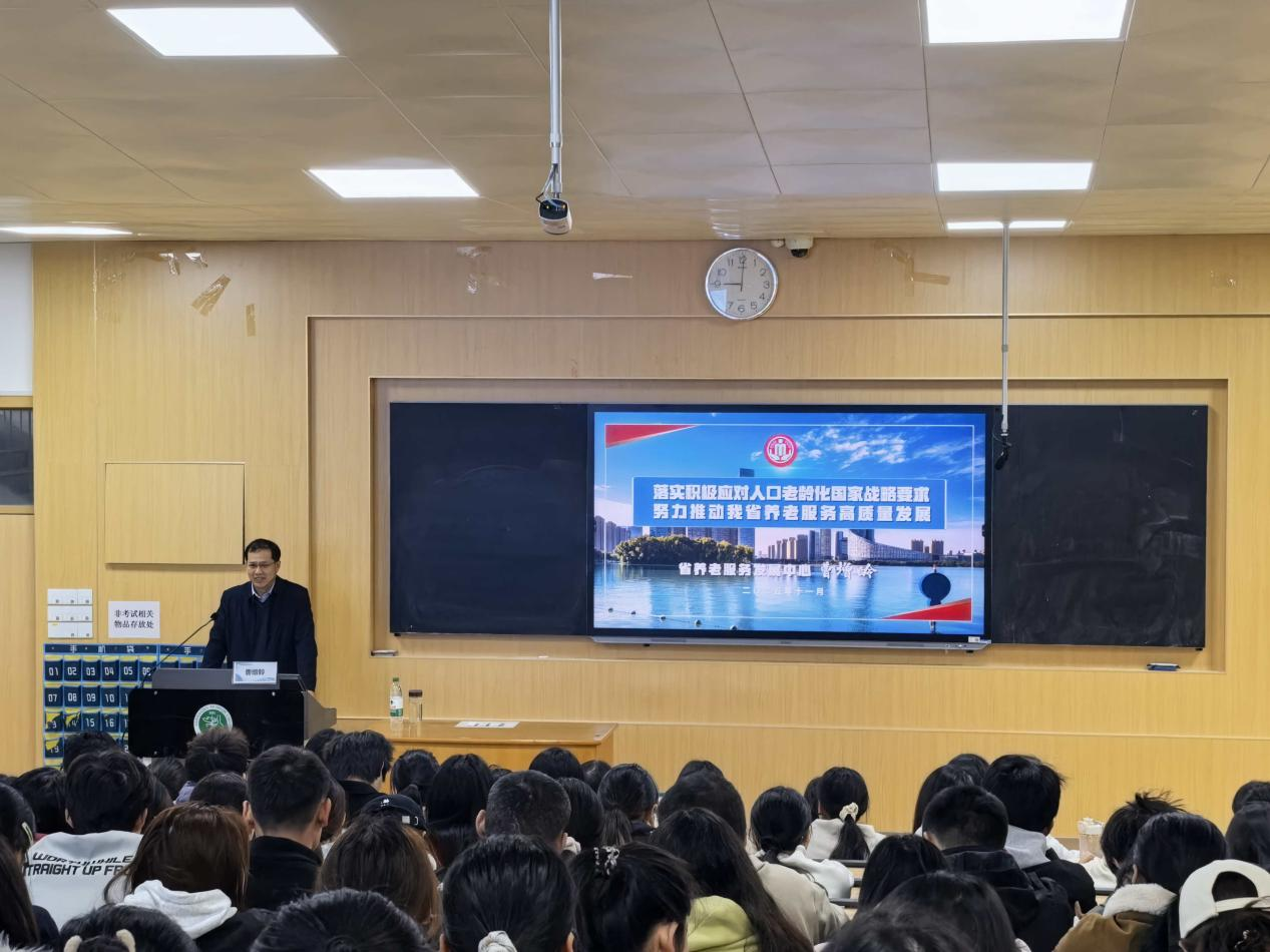 作为学院“追梦护航”系列活动的重要内容,本次专题讲座精准对接了养老服务管理专业的建设需求与人才培养目标。不仅为学院优化专业课程设置、深化实践教学改革提供了政策指引,也帮助相关专业学生明晰了养老服务行业的发展前景,进一步树立专业自信、强化职业认同。