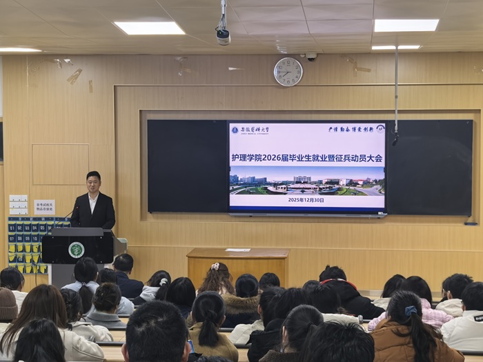 会议邀请蜀山区征兵办参谋赵晓东现场解读最新征兵政策,我校第二附属医院护理部副主任张淼作《锚定职业航向,绽放护理芳华》专题讲座。