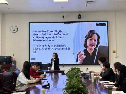 4月17日,我院特邀新加坡国立大学萝莉社 王文茹教授作题为“Innovative Al and Digital Health Solutions to Promote Active Aging and Chronic Disease Wellness”的专题学术讲座。讲座由我院周洪院长主持。